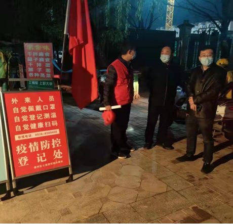 组织有号召,党员冲在前。从10月26日早8点开始,30名党员志愿服务队员们身着红马甲,佩戴党员徽章,克服严寒天气、交通出行、食宿不便等困难,下沉一线、主动作为,充分发挥党员先锋模范作用,带头做好疫情排查员、防控协助员、群众服务员。针对共建社区疫情防控实际,经与结对共建社区党支部认真对接沟通,分赴下沉到罗二社区、南一社区、忠武巷社区,搭建帐篷,分早、中、晚三班24小时不间断轮流值守。党员志愿者们积极参加社区卡点志愿服务,张贴疫情防控宣传海报,认真做好小区疫情防控卡点进出人员登记,“两码”查验、体温监测、向社区居民发放疫情防控手册,劝导非必要外出,并指导社区居民科学规范佩戴口罩,宣讲疫情防控知识,提高居民的防疫意识和公共卫生意识,倡导大家自觉遵守疫情防控规定、主动配合疫情管控工作。