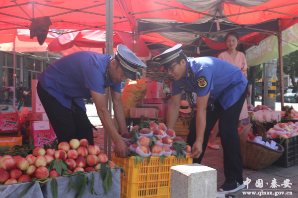 同时,县执法局还携手顺丰速运和邮政快递公司,在城区设置了4处临时果品交易疏导点。在临时果品疏导点的选取上,经过实地调研,以不影响市民生活、不妨碍城市交通为前提,统一规划,分点布局。目前,已在滨河雅苑附近、旱坪路、街泉街、一中小广场等区域设置了果品临时交易疏导点4处,为果农提供摊位180多个。在保持良好市容市貌的同时,打通了果农卖桃子带来的交通拥堵等问题,也弥补了群众就近买桃子没有市场和果农们没有统一摊位的断点问题。