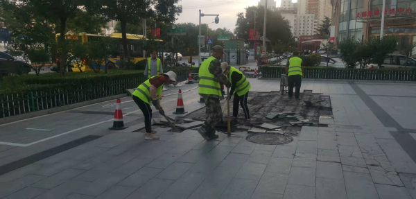 通过前期摸排,发现道路破损问题共1222处,其中人行道问题1023处面积10065平方米,车行道问题199处面积19948平方米。9月4日至13日按天制定整治计划,计划投入1175人次,机械324台次,修补人行道10065平方米,车行道19948平方米。截止9月10日,已完成人行道修补704处7433平方米,车行道修补86处18614平方米,修补工作正在紧张开展中。