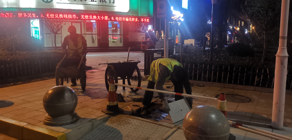 施工人员加班完成道路修补