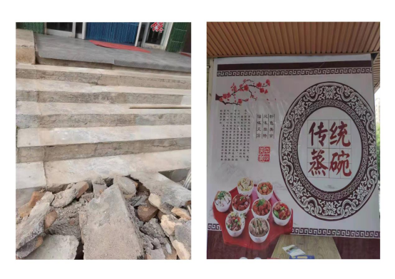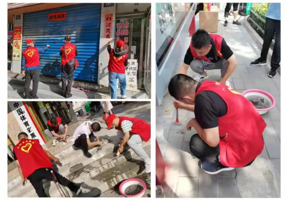 (拆除违规砌筑坡道、更换路边污染破损广告)