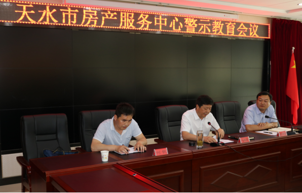十八大以来,坚持全面从严治党、狠抓党风廉政建设和反腐败工作已成为常态,6月11日天水市房产服务中心召开警示教育会议,市住建局党组成员、市纪委监委派驻市住建局纪检监察组组长张剑锋作了警示报告,市住建局党组成员、市房产服务中心主任马顺祥主持会议,机关班子成员、干部职工及交易中心副科以上干部50余人参加了会议。
