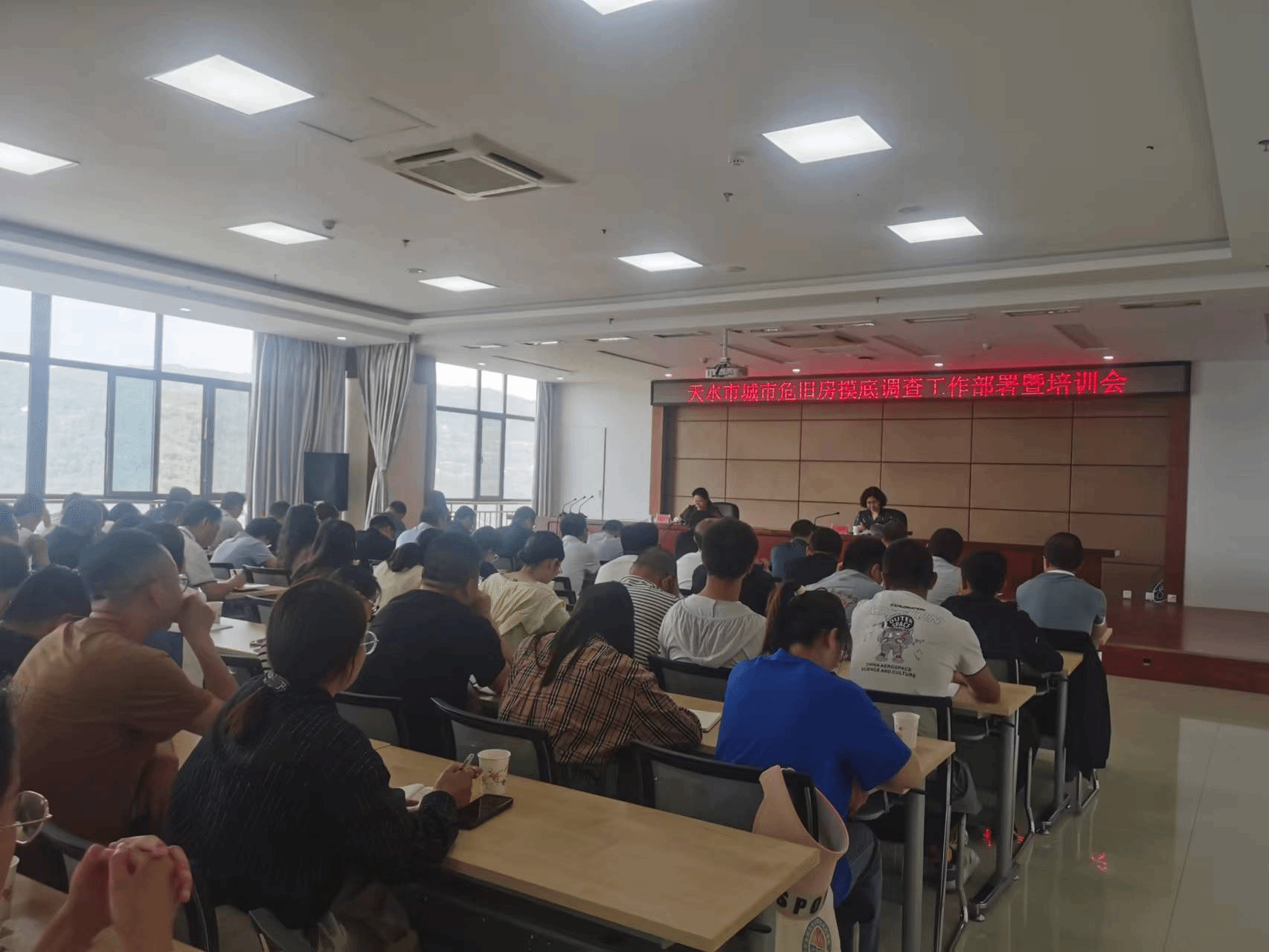 “三抓三促”行动开展以来,市房产服务中心认真贯彻省委、市委、市住建局党组部署要求,以能力素质明显提升为目标,从抓学习促提升入手,对照“能力要增强,我该会什么”专题,重点围绕城镇危旧房调查摸底工作,举办了天水市城市危旧房摸底调查工作部署暨培训会,以更高标准、更严要求、更快节奏推动城镇危旧房摸底调查工作提质增效。各县区住建中心和相关街道(社区)工作人员共80余人参加,市房产服务中心主要领导出席并讲话、分管领导安排部署城市危旧房摸底调查工作。