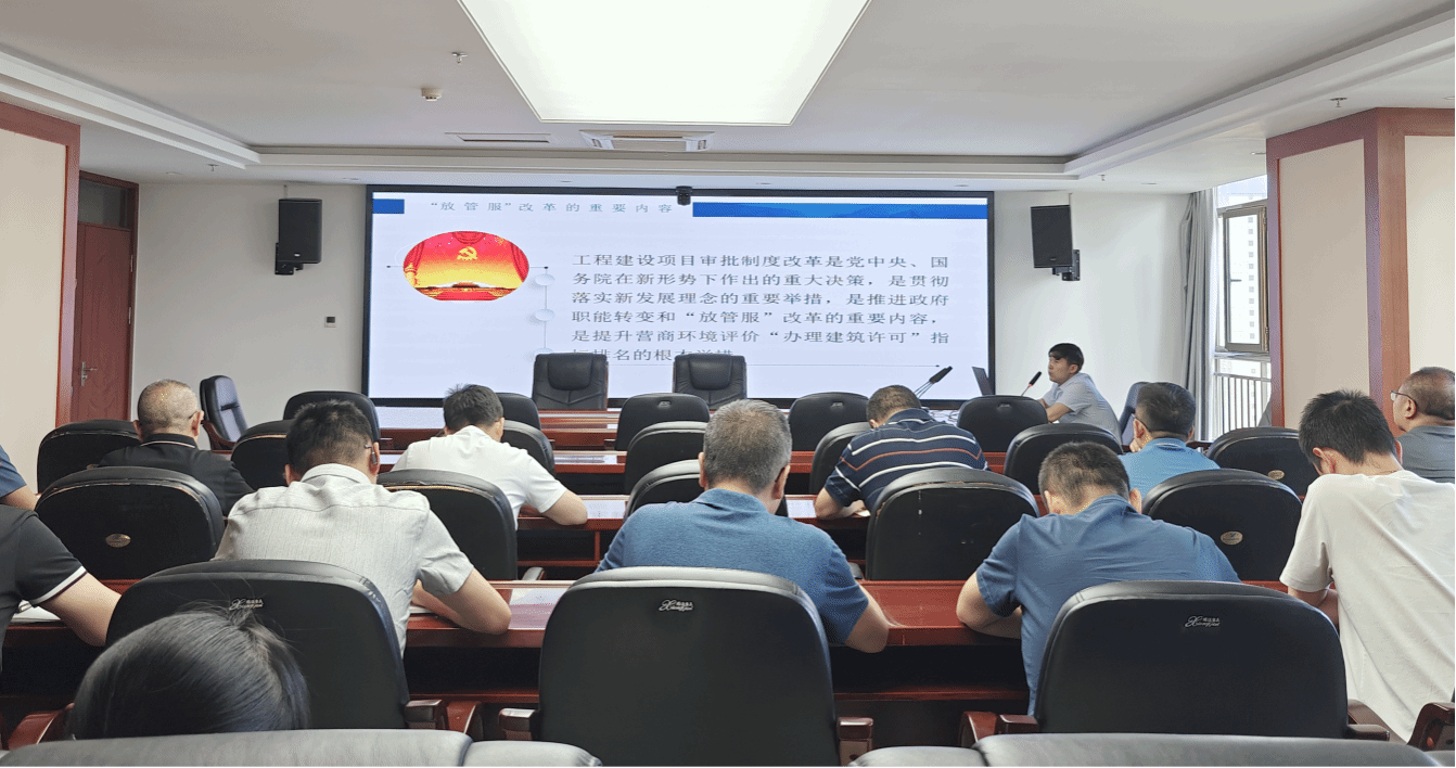 为深入学习贯彻习近平新时代中国特色社会主义思想,常态化纵深推进“三抓三促”行动走深走实,6月21日上午,市住建局组织举办第二期“干部讲堂”。市政府政务大厅住建局窗口副科长穆昀以“深化工程建设审批制度改革,优化营商环境”为题作了专题讲解,机关全体干部职工及局属单位负责人,共计30余人参加了本次活动。