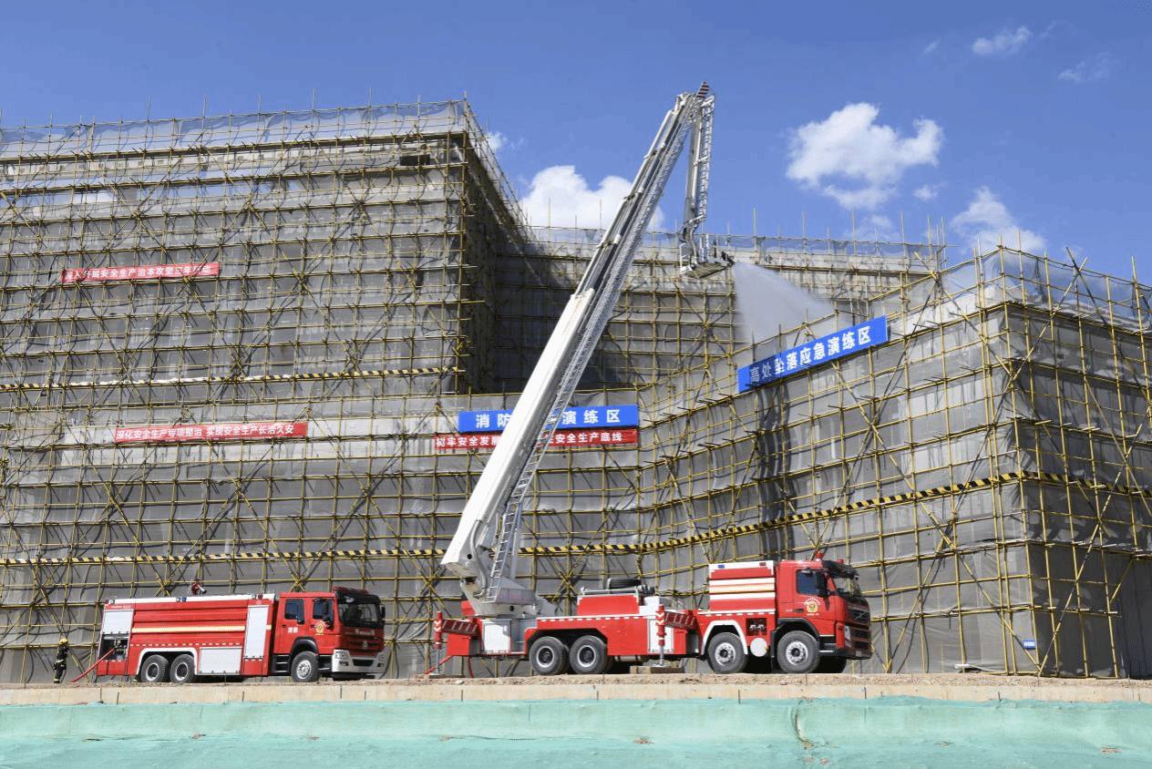 围绕“人人讲安全、个个会应急--畅通生命通道”的活动主题,参会人员集体学习了习近平总书记关于安全生产重要论述、观看了警示教育视频,并有序开展了火灾消防救援及逃生、高处坠落、外防护落地式脚手架坍塌应急救援演练,按照预案流程,各参演单位通力协作,有条不紊地完成所有既定科目。演练结束后,参会人员在工作人员引导下有序进行了质量安全标准化观摩、技术交流,活动取得圆满成功。