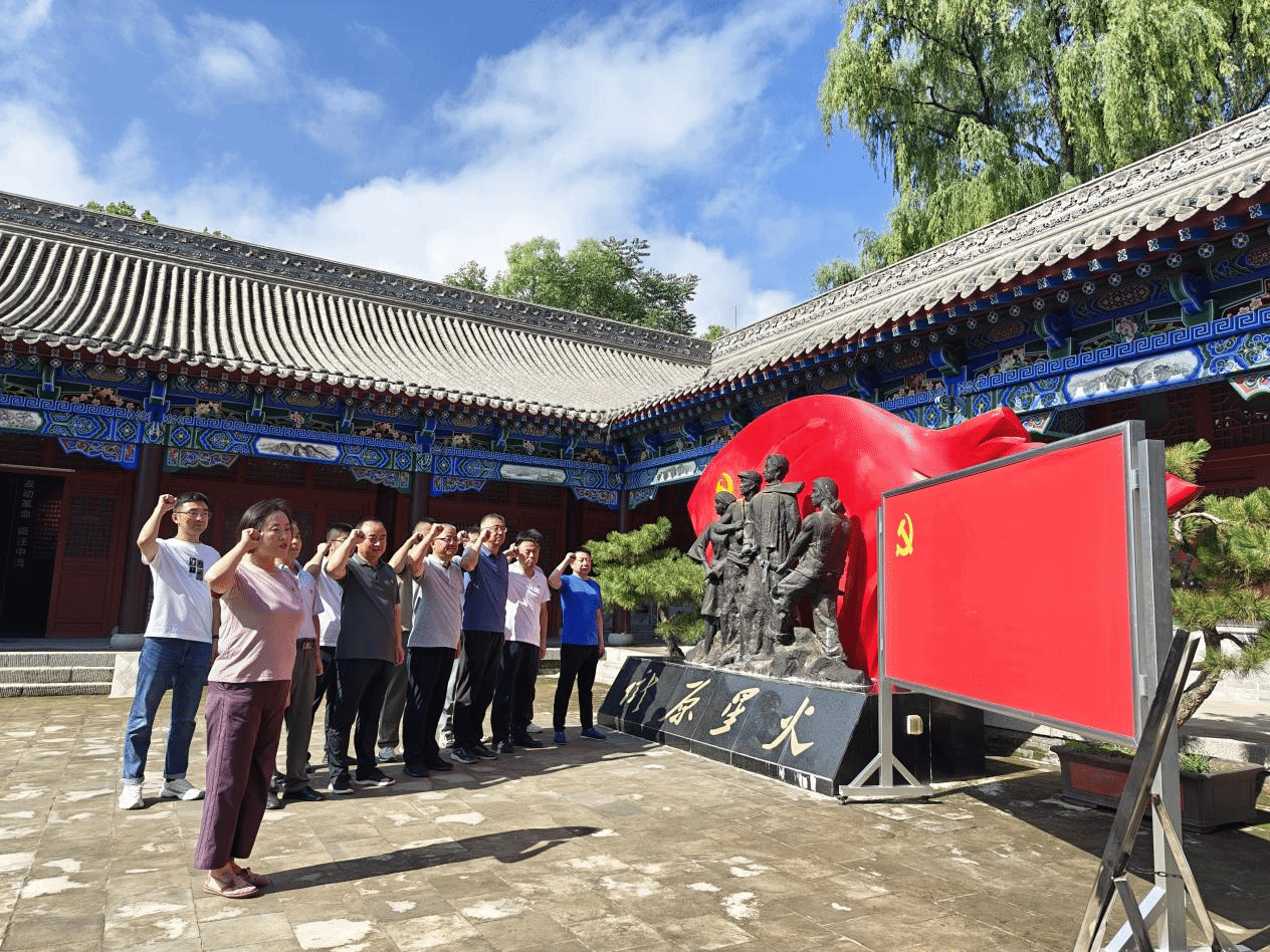 在纪念馆内,全体党员面对党旗,庄严地重温了入党誓词。大家高举右拳,铿锵有力地宣誓,重温初心,坚定了信仰的力量,进一步增强了立足岗位、履职尽责、担当作为的责任和使命。