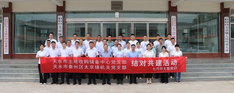 7月7日,天水市土地收购储备中心党支部与秦州区太京镇机关党支部开展结对联建主题党日活动。两个支部全体党员重温了入党誓词,并进行了集体学习。太京镇党委书记赵瑞波同志作了专题党课,介绍了太京镇工作开展情况。随后,前往太京镇郭家坪村参观,就发展壮大村集体经济、党支部标准化建设等工作进行了深入交流。