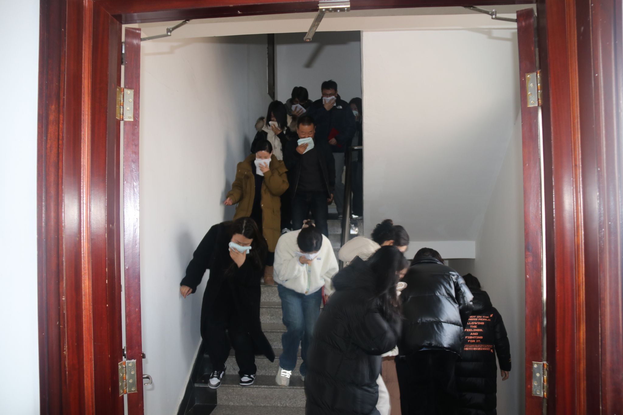 在随后的紧急逃生演练、灭火演练过程中,全体干部职工在中心突发事件应急处置工作领导小组的组织下,弯腰低姿用湿毛巾捂住嘴巴口鼻,井然有序地从安全通道紧急疏散逃离火场。随后在预选场地进行了灭火现场演练,王维宗教官为大家示范讲解了灭火器的使用方法、注意事项,指导现场人员进行实际操作,并利用干粉灭火器对起火点进行灭火操作演练。