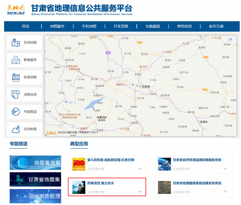 “热辣滚烫,魅力天水”专题地图访问地址:https://gansu.tianditu.gov.cn/protsmlt/。