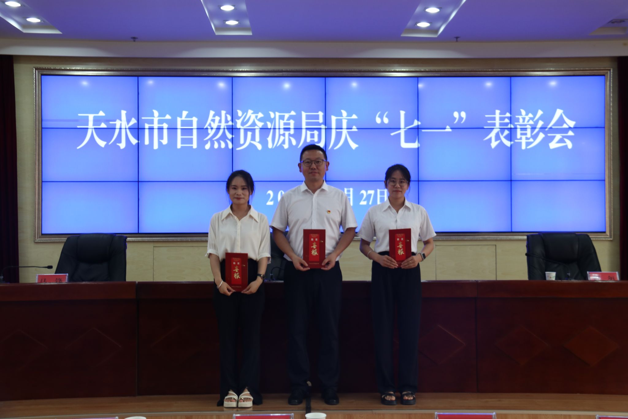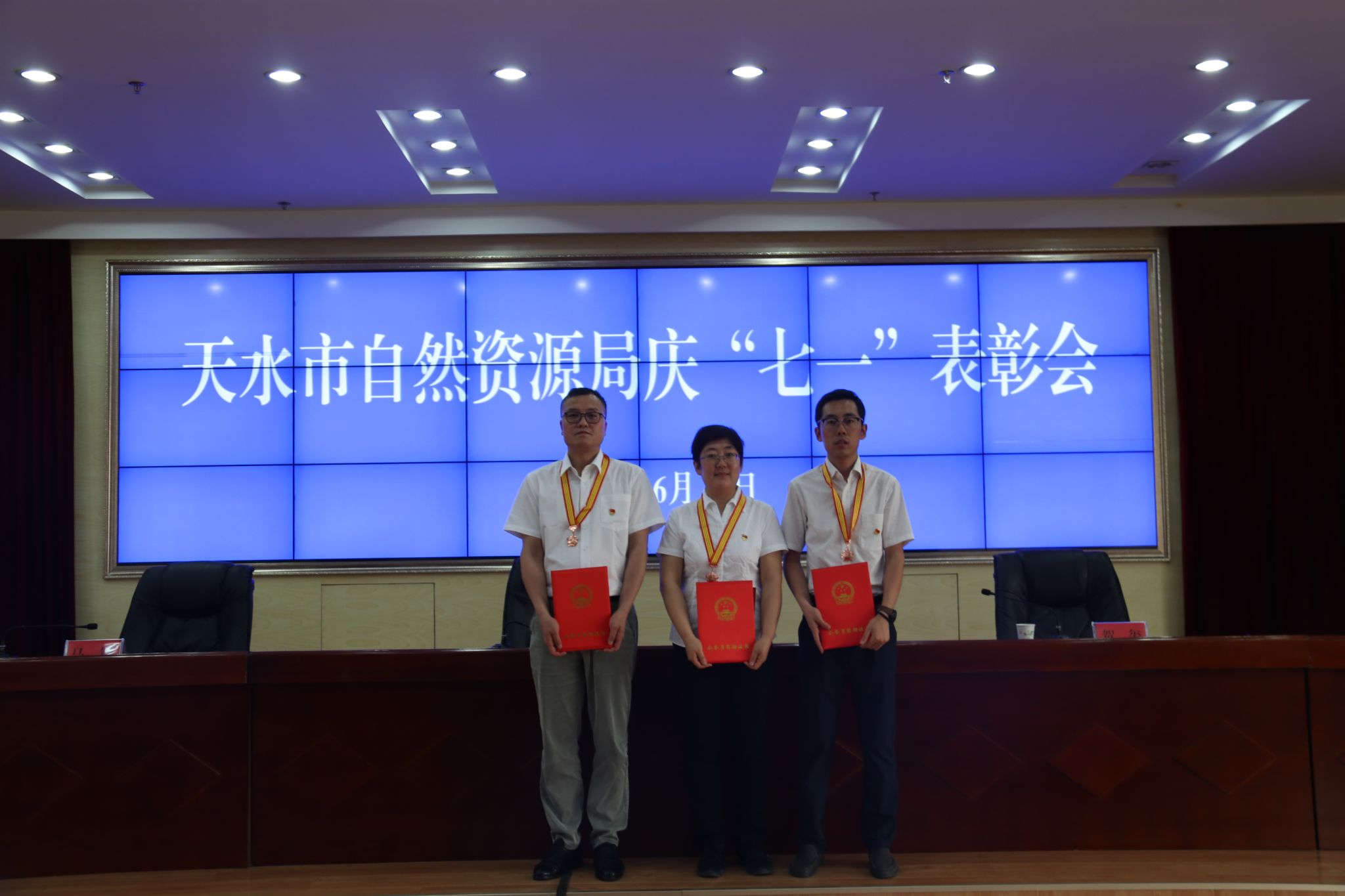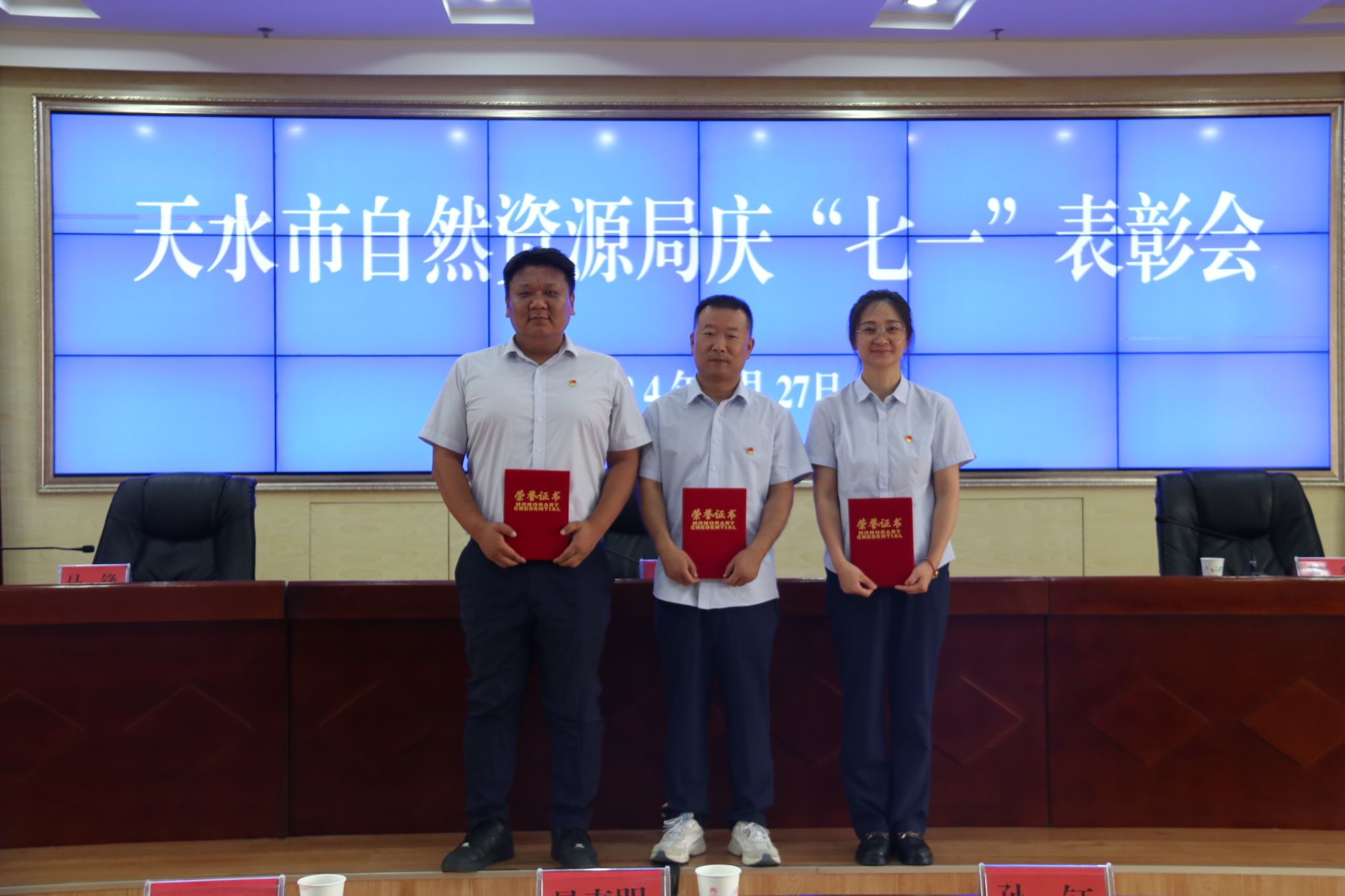 会上,全体党员重温了入党誓词;宣读了《中共天水市委组织部关于公务员考核奖励的通知》《中共天水市自然资源局党组关于表彰优秀共产党员优秀党务工作者和先进党支部的决定》,并为2023年度优秀共产党员、优秀党务工作者、先进党支部以及市委组织部2021—2023年度考核优秀记三等功人员现场颁发了荣誉证书、奖牌;优秀共产党员和先进党支部代表分别作了交流发言。