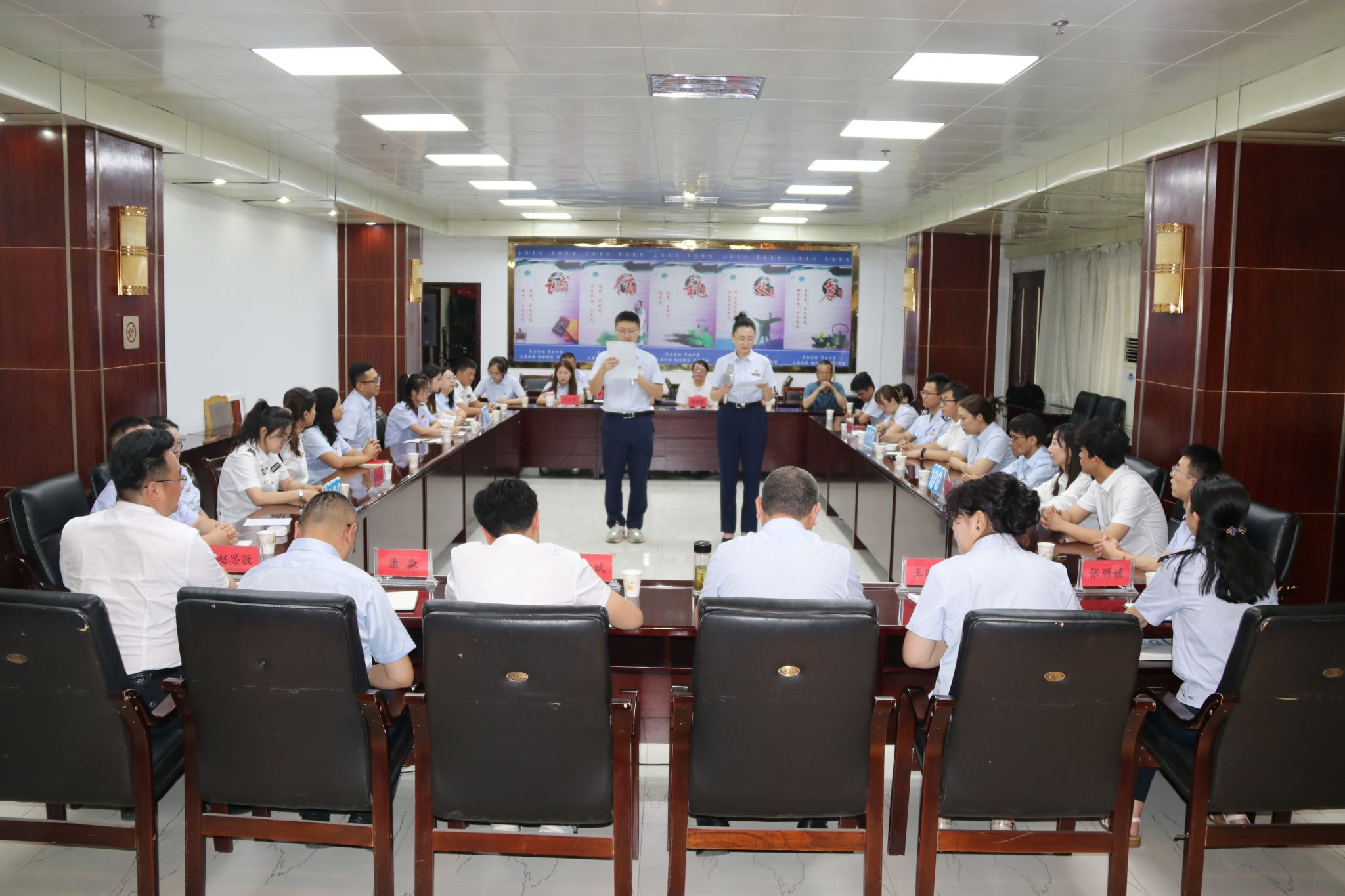 此次竞赛以参赛选手现场抽签的方式确定分组,7个党支部20名党员每组5人分为一组参赛,共分4组,比赛内容丰富,涵盖了党的政治理论、不动产登记、房产交易、税务等相关业务及法律知识。整场比赛在紧张热烈的气氛中进行,特别是在抢答环节,参赛队员们团结协作、相互配合、踊跃抢答,展现了扎实的理论知识功底和良好的精神风貌。经过激烈的角逐,秦州一组代表队凭借出色的临场发挥和扎实的知识功底荣获一等奖,秦州二组、麦积一组代表队分别荣获二等奖和三等奖。