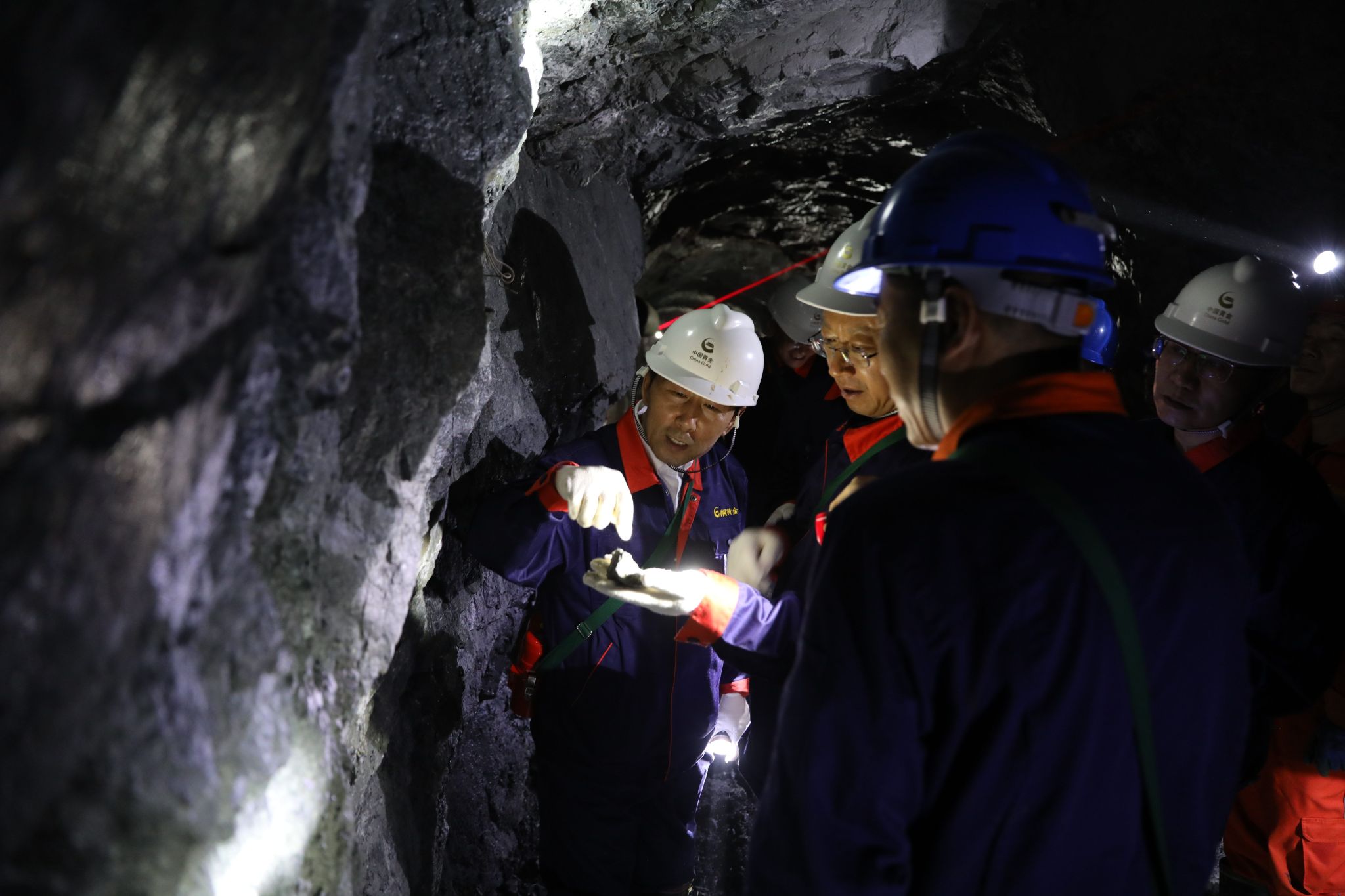 张晓强一行先后来到调度室、视频监控室、选矿厂和一分矿中段采场,实地查看了公司在线监测监控系统建设情况和勘查开采、安全设施配套及应急系统运行情况,详细了解行业动态,并与企业负责人座谈交流,共商发展对策。