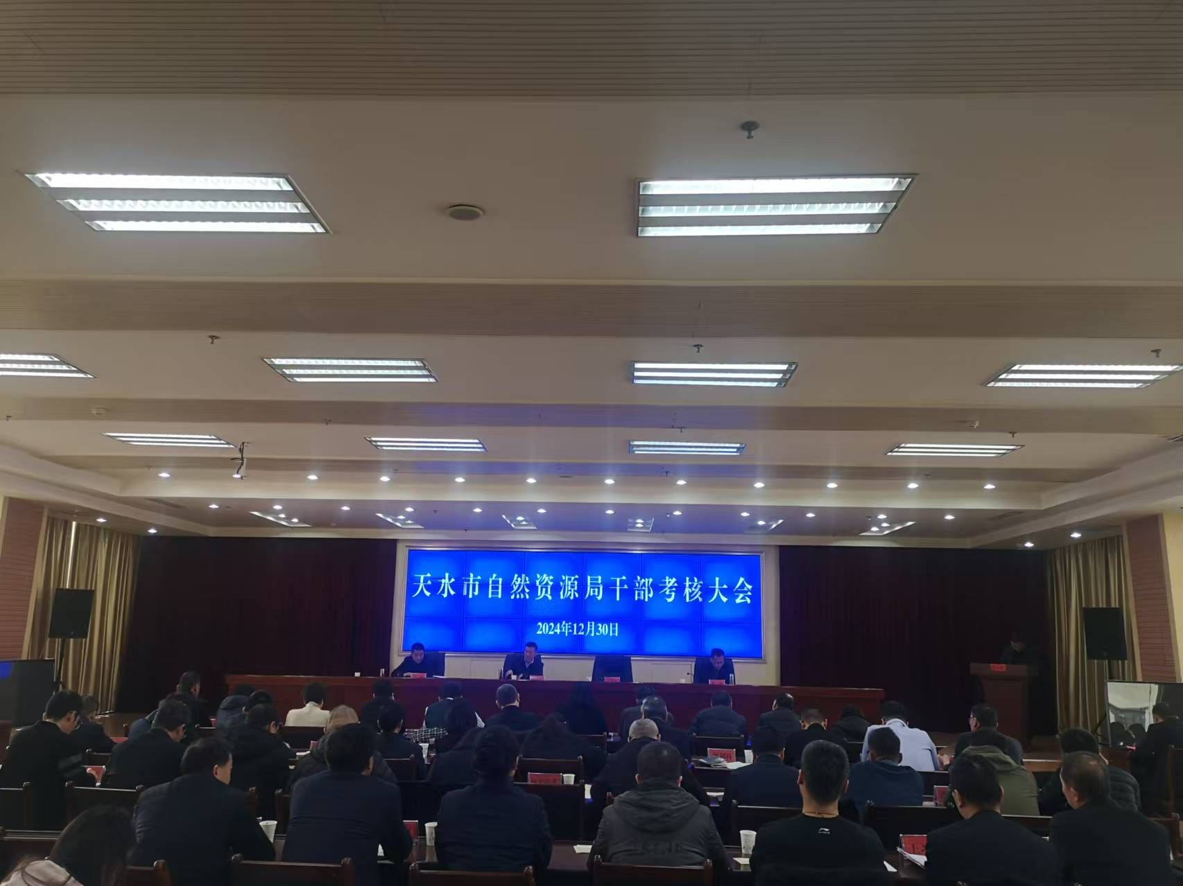 为全面总结2024年各项工作完成情况,进一步凝聚工作合力,提升干部职工履职尽责能力。12月30日,天水市自然资源局组织召开了2024年度科级干部考核大。党组书记、局长王彦军出席会议并讲话。