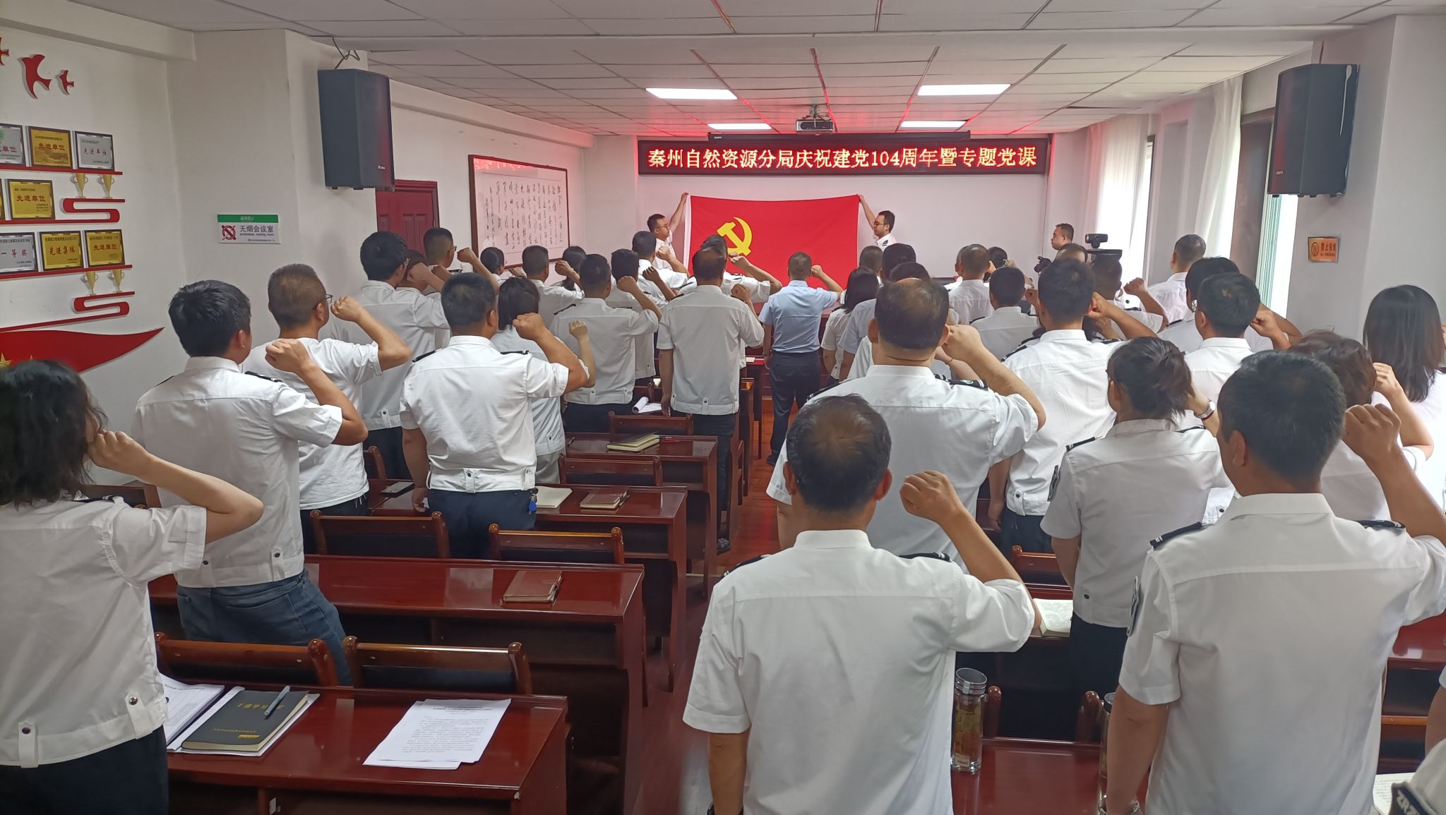 为庆祝中国共产党成立104周年,深入贯彻中央八项规定精神。6月30日上午,秦州自然资源分局举办了庆祝中国共产党建党104周年专题党课。党组书记、局长赵瑞波围绕“做一名敢于担当善于担当善于作为的合格党员”为主题,为全局党员干部讲授了专题党课,深刻解读中央八项规定精神学习教育重大意义,深入剖析违反中央八项规定精神表现形式及严重后果,帮助大家全面理解中央八项规定精神的内涵和要求。