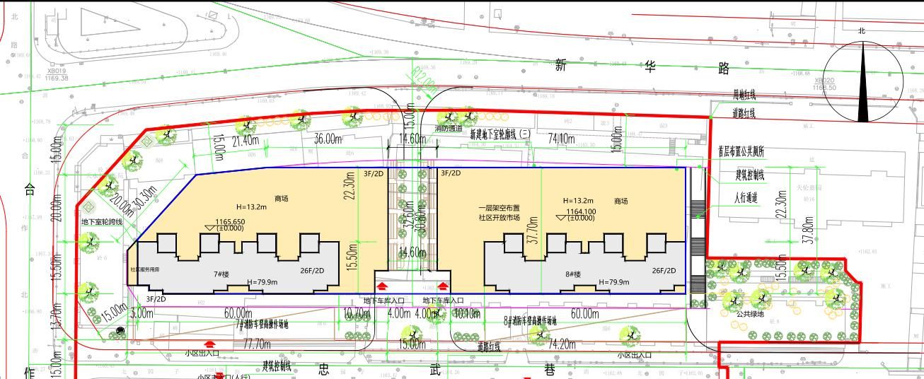 将原审批总平面图7#楼去掉一个单元并向东北方向进行移动,原8#楼东南侧8层建筑予以保留。