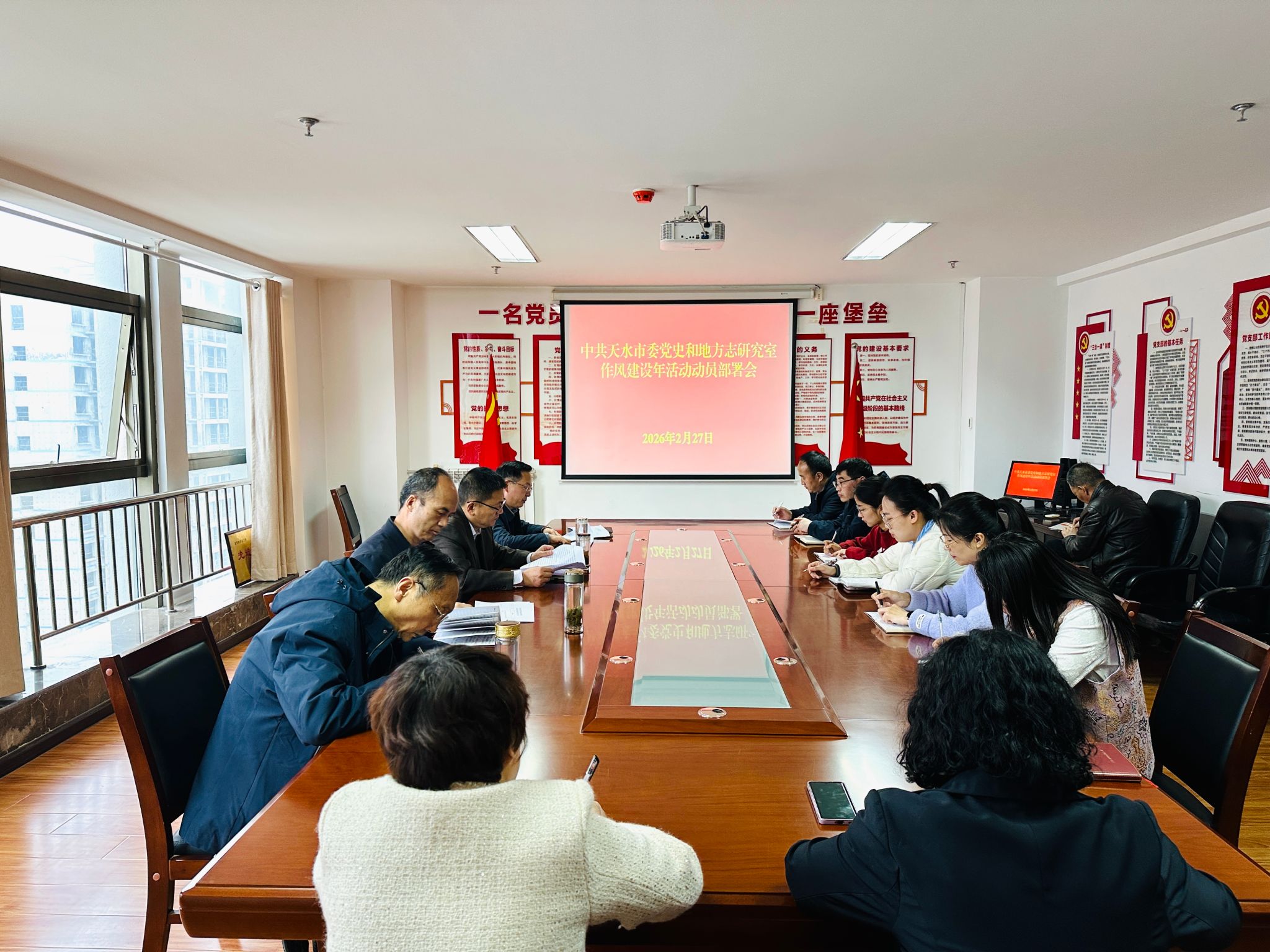 为深入贯彻落实市委关于全市作风建设年活动的部署要求,2月27日,市委党史和地方志研究室召开作风建设年活动动员部署会议,传达学习《天水市作风建设年活动实施意见》《天水市持续深化“三抓三促”行动实施方案》,对室作风建设年活动进行安排部署。