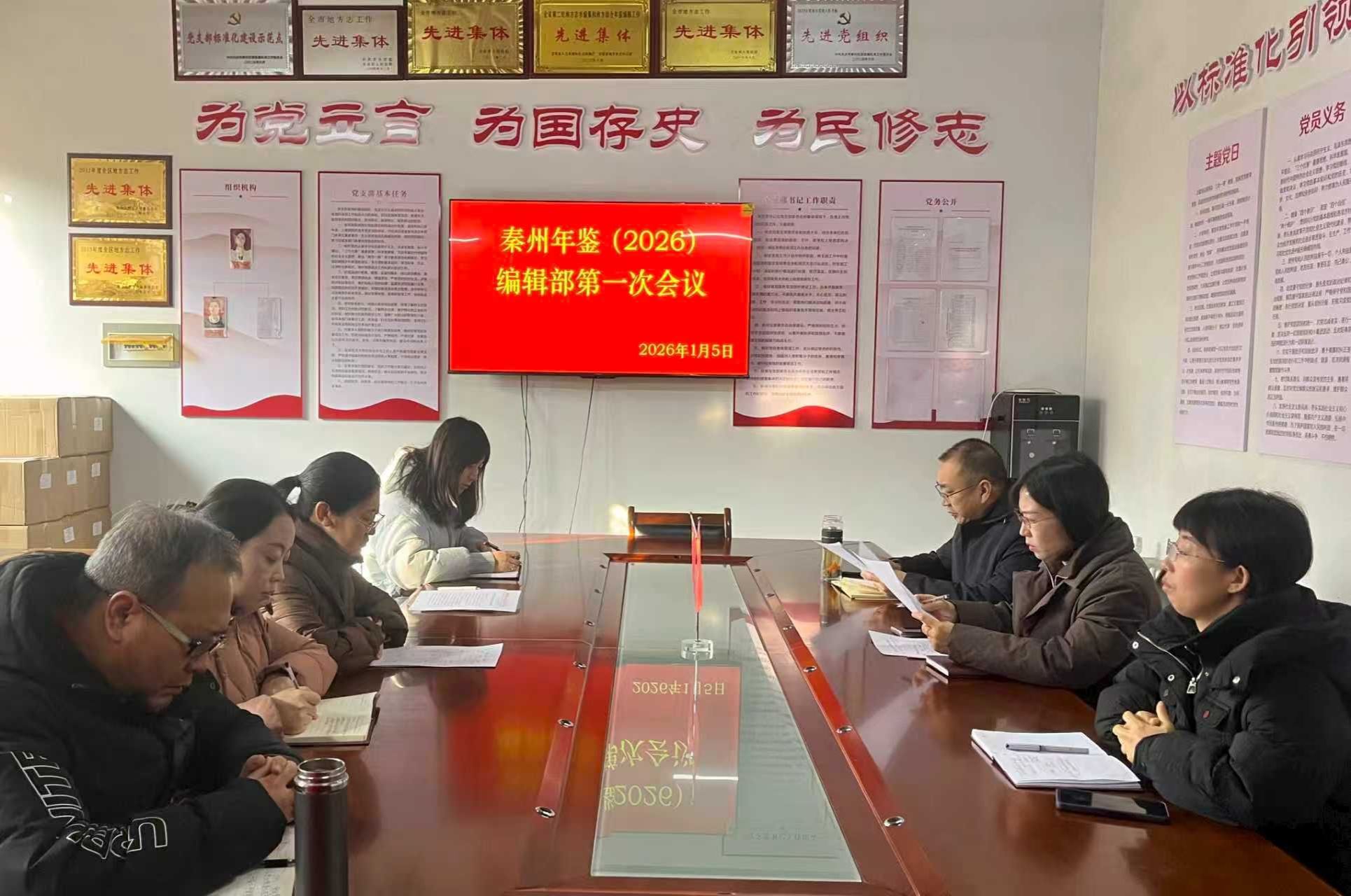 为确保高标准高质量完成《秦州年鉴(2026)》编纂工作任务,科学谋划、提早安排2026年的年鉴编纂工作,1月5日,区委党史和地方志研究室召开《秦州年鉴(2026)》编辑部第一次会议,主编、副主编及全体编辑人员参加会议。