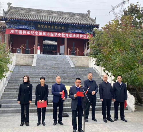 10月24日上午,邓宝珊将军纪念馆举行省、市两级中共党史教育基地揭牌仪式。中共天水市委常委、宣传部部长王文东出席揭牌并讲话,市委党史和地方志研究室分管领导宣读命名文件,秦州区委分管领导致辞。