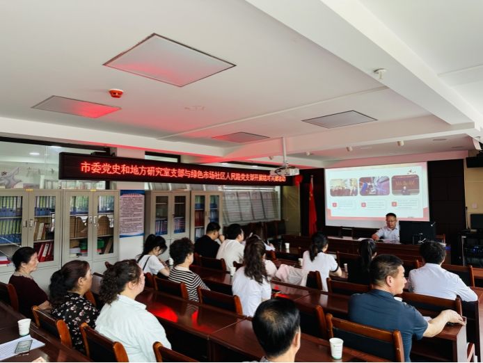 为庆祝中国共产党成立103周年,进一步推进结对共建支部互学互促、共建共享,6月28日,市委党史和地方志研究室党支部与秦州区中城街道绿色市场社区人民路党支部联合开展“庆七一 学党纪 明初心 践使命”联合主题党日暨党纪学习教育。