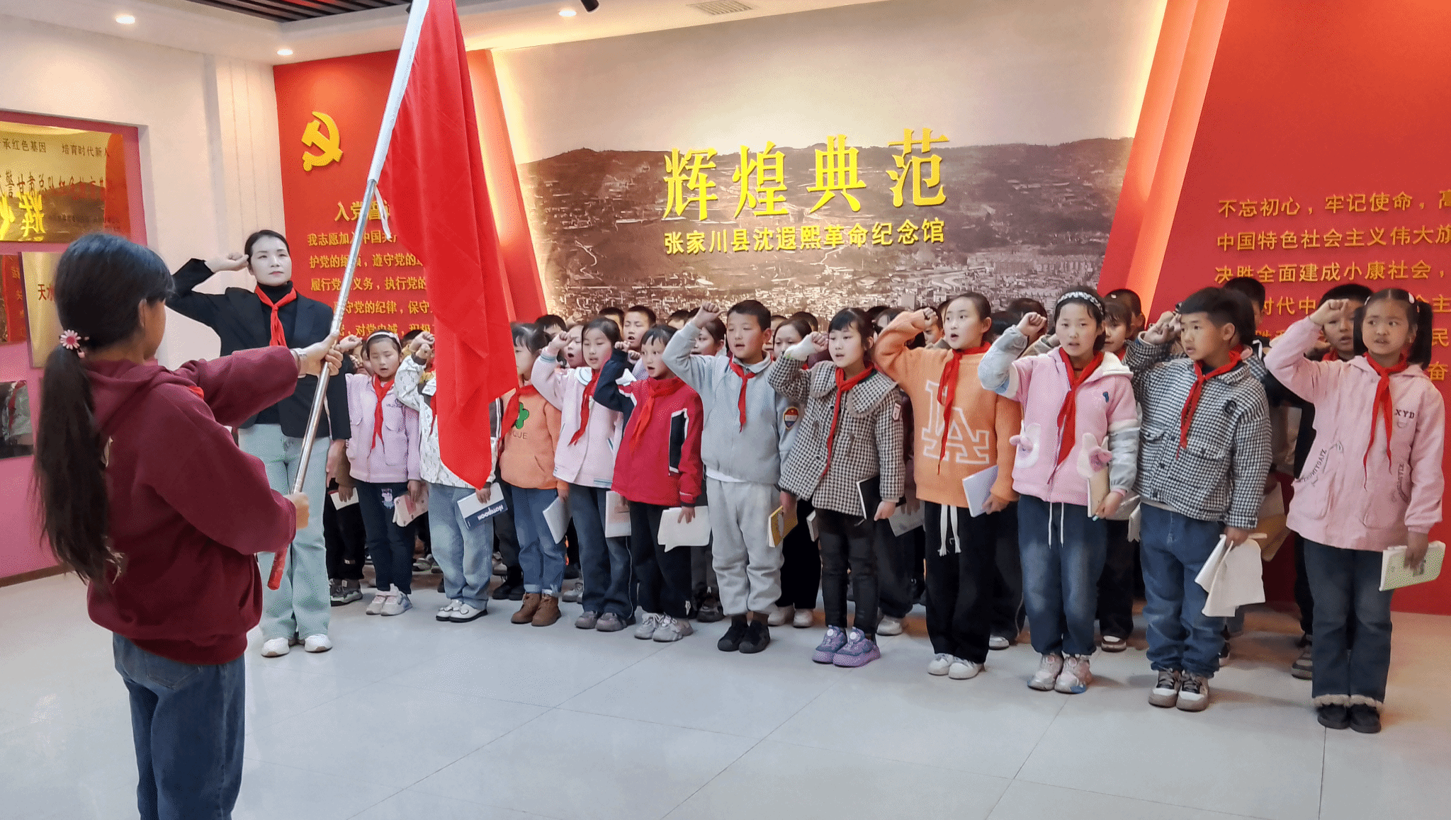 先后在“清明”“五·四”“七·一”“九·一八”“十·一”“抗日战争胜利纪念日”等重要时间节点,分批组织中小学生到沈遐熙革命纪念馆开展“纪念馆里讲历史”“缅怀革命先烈、争做最美少年”“在队旗下宣誓”等专题教育,通过泛黄的老照片、珍贵的历史遗物和研究室工作人员的生动讲解,重温中国共产党在张家川早期革命活动的峥嵘岁月,进一步拓宽塑造青少年思想的教育渠道,加强对青少年的爱国主义和理想信念教育,让青少年更加了解张家川革命历史,不断增强青少年的家乡情、爱国情和自信心、自豪感。