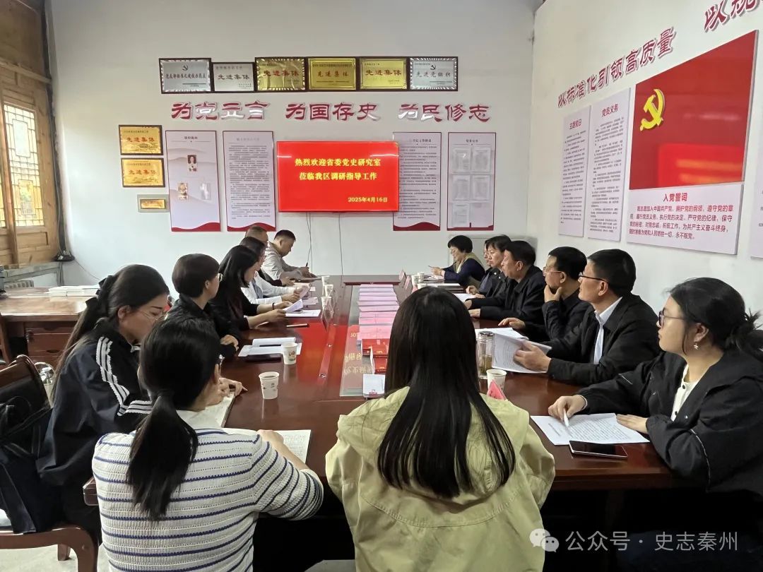 4月16日,省委党史研究室副主任、机关党委书记兰金补一行调研秦州区党史工作,秦州区委常委、宣传部部长王萍陪同调研。