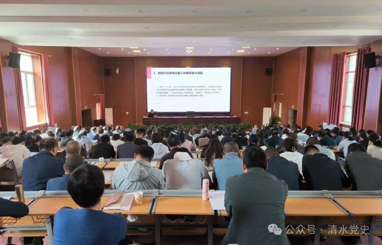 5月21日,清水县委党史和地方志研究室党史股负责人为县直机关党员轮训班200余名学员授课,宣讲《党史学习教育工作条例》(以下简称《条例》)和清水党史。