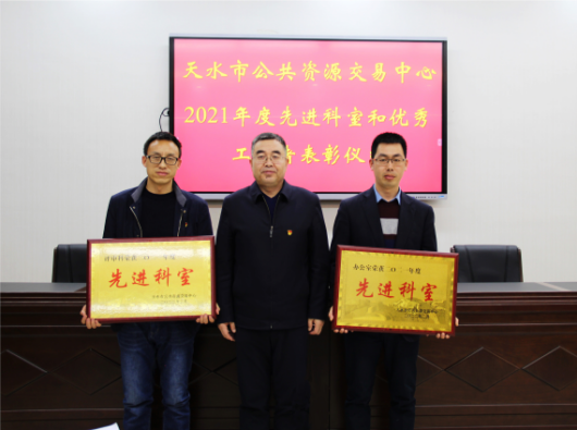 2月28日上午,天水市公共资源交易中心召开全体干部职工大会,集中表彰2021年度先进科室及优秀工作者。会议由中心党组书记、主任马利民主持。