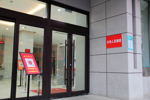 一是完成大厅入口改造。重新规划了大厅出入通道和活动路线,分开设置了“外来人员通道”和“职工通道”,严格执行外来进入人员信息登记、佩戴口罩、体温检测、查验健康码(行程卡)、保持1米以上社交距离等防控措施,全面落实落细进场人员的追溯管理,坚决把严把牢疫情防控的第一道关口。同时,利用大厅LED显示屏滚动播放疫情防控宣传标语和相关防疫知识,不断增强广大群众的自我范防意识。