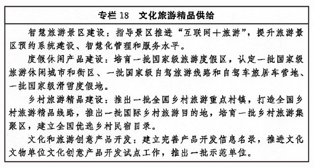 适应大众旅游时代新要求,推进旅游为民,推动构建类型多样、分布均衡、特色鲜明、品质优良的旅游供给体系,推动文化和旅游业态融合、产品融合、市场融合。提升旅游演艺、文化遗产旅游、文化主题酒店、特色节庆展会等品质,支持建设集文化创意、旅游休闲等于一体的文化和旅游综合体。依托革命博物馆、党史馆、纪念馆、革命遗址遗存遗迹等,打造红色旅游经典景区和经典线路。利用乡村文化传统和资源,发展乡村旅游。加强对当代社会主义建设成就的旅游开发,深入挖掘重大工程项目的精神内涵,发展特色旅游。加强对工业遗产资源的活化利用,开发旅游用品、特色旅游商品,培育旅游装备制造业,发展工业旅游。推动旅游与现代生产生活有机结合,加快发展度假休闲旅游、康养旅游、研学实践活动等,打造一批国家全域旅游示范区、A级旅游景区、国家级旅游度假区、国家精品旅游带、国家旅游风景道、特色旅游目的地、特色旅游功能区、城市绿道、骑行公园和慢行系统。大力发展智慧旅游,推进智慧景区、度假区建设。