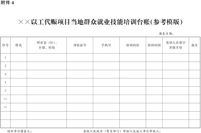 4.××以工代赈项目当地群众就业技能培训台账(参考模版)