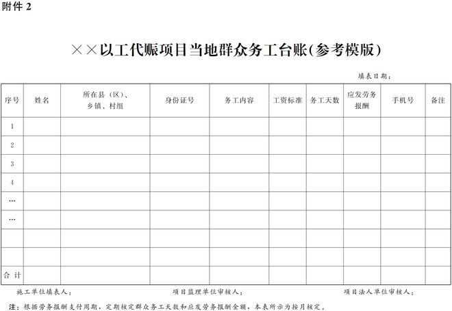 2.××以工代赈项目当地群众务工台账(参考模版)