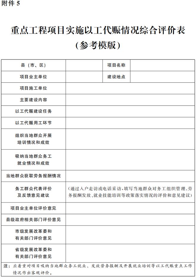5.重点工程项目实施以工代赈情况综合评价表(参考模版)