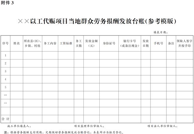 3.××以工代赈项目当地群众劳务报酬发放台账(参考模版)