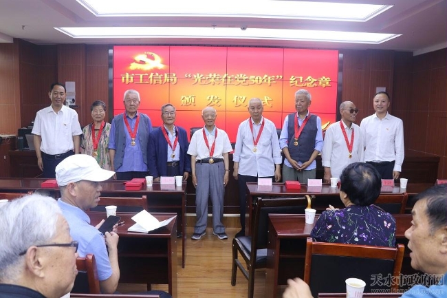 会议强调,颁发“光荣在党50年”纪念章是庆祝我们党成立100周年的重要内容,对于增强党员的荣誉感、归属感、使命感具有十分重要的意义。希望各位老党员珍惜光荣历史、不忘革命初心、永葆政治本色,继续做“永远跟党走”的坚定支持者和模范践行者,以老骥伏枥、志在千里的进取精神,为工业经济工作谏诤言、洒余热,继续从思想上、舆论上、行动上关心支持市工信局工作,共同为重振天水工业经济雄风献计出力。