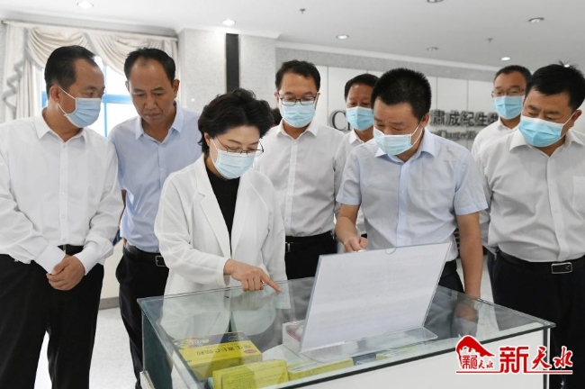 天水岐黄药业有限责任公司前身是创建于1958年的天水制药厂,是我市中成药研发与生产的龙头企业,拥有151个国药准字号品种,自主专利13项。在岐黄药业公司药品展示大厅,张永霞仔细询问了重点药品研制、生产、使用各环节工作。她指出,天水中医药产业发展有基础、有优势、有潜力,各级各相关部门要认真贯彻落实习近平总书记关于“遵循中医药发展规律,传承精华,守正创新,加快推进中医药现代化、产业化”的重要指示精神,抢抓建设国家中医药产业发展综合试验区的发展机遇,进一步加强和完善中医药产业产品研发、加工生产、服务配套、组织领导、市场营销等体系建设,加快推动中医药一二三产业链衔接发展,不断提高产品附加值、提升市场影响力。要充分发挥我市中医药产业药号优势、品牌优势、资源优势,坚持政府引导和企业主体相结合,坚持传承创新与打造品牌相结合,在产业园建设、中药材精深加工、医药大品种培育、医疗机械制造和康养保健等领域深耕细作,着力打造产业园区引领、骨干企业带动、特色品种支撑的中医药产业发展新模式。