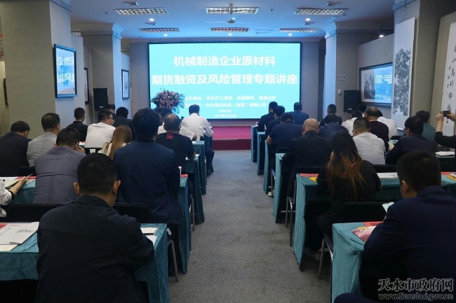 5月29日上午,市工信局联合浙商期货、海通证券举办全市机械制造企业原材料期货融资及风险管理专题讲座,秦州区、麦积区工信局、开发区经发局及全市机械制造企业相关负责人共60余人参加活动。