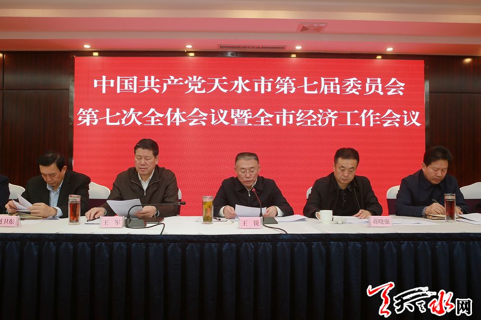 2月22日,市委七届七次全体会议暨全市经济工作会议召开。会议深入学习贯彻习近平新时代中国特色社会主义思想和党的十九大精神,全面贯彻落实中央经济工作会议和省委十三届七次全会暨省委经济工作会议的决策部署,总结过去一年的工作,分析当前面临的形势,安排部署今年的任务,审议通过了《中共天水市委关于2018年落实全面从严治党主体责任工作情况的报告》。