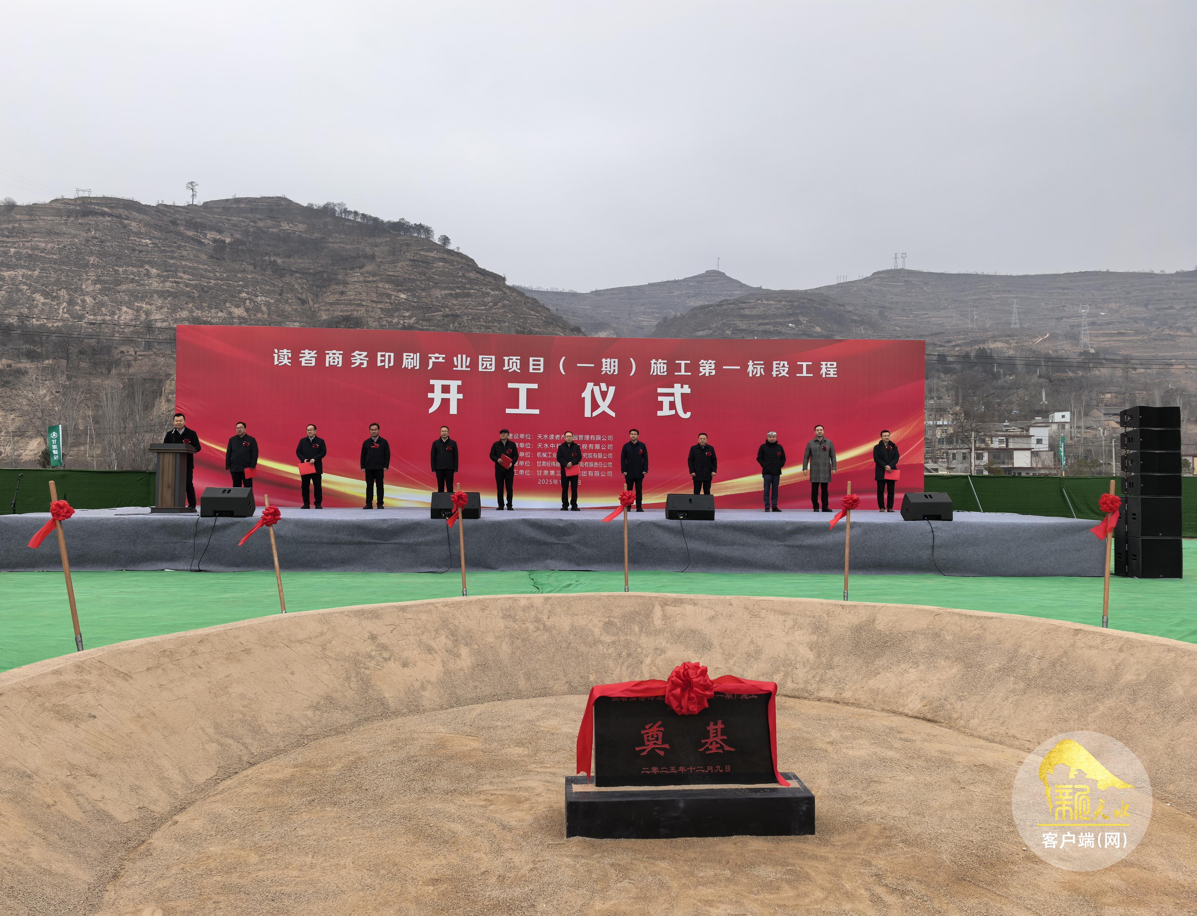 新天水讯【天水融媒记者黄虹】12月9日,读者商务印刷产业园项目在天水市秦州区藉口镇举行开工奠基仪式。读者出版集团有限公司党委书记、董事长张斌强宣布项目开工,天水市政府相关领导,读者出版集团有限公司党委副书记、总经理王光辉等共同为项目奠基。