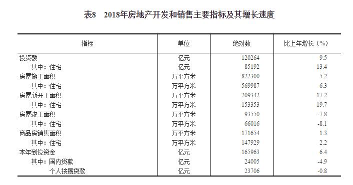 全年房地产开发投资120264亿元,比上年增长9.5%。其中住宅投资85192亿元,增长13.4%;办公楼投资5996亿元,下降11.3%;商业营业用房投资14177亿元,下降9.4%。