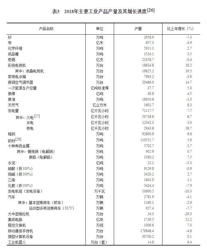 [26]2017年部分产品产量数据进行了核实调整,2018年产量增速按调整后的可比口径计算。