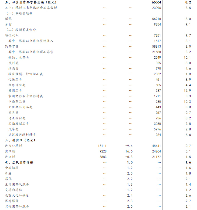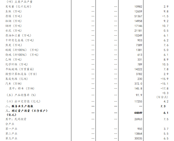 (2)规模以上工业增加值及其分类项目增长速度按可比价计算,为实际增长速度;其他指标除特殊说明外,均按现价计算,为名义增长速度。