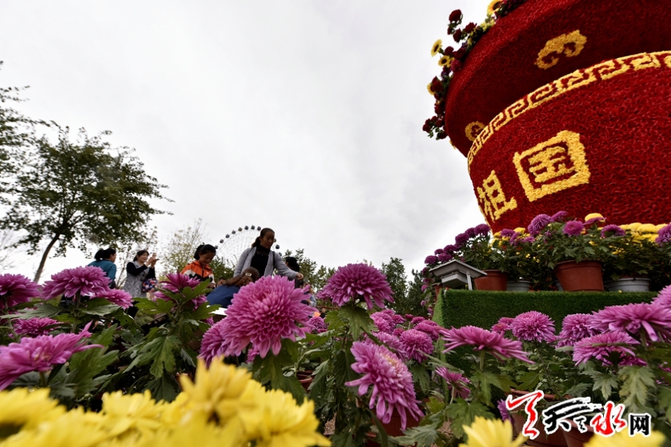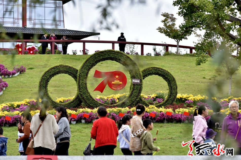 由麦积区委、区政府和天水日报社主办的天水市庆祝中华人民共和国成立70周年“盛世华诞 、菊香麦积”大型菊花展开园以来游人不断,本届菊花展围绕庆祝中华人民共和国成立70周年这条主线,设置20多处大型景观节点,共展出菊花80多个品种、30余万盆。以营造喜庆、热烈、祥和的氛围为格调,巧妙利用公园的廊、亭、台、榭、桥等园林设施,依托公园现有的雕塑、景墙、水体等各种景观元素,融合传统与现代园艺,借助绿色雕塑和博古架、扇面、屏风、陶罐等中国传统文化元素,运用借景、框景等艺术手法布景造型,充分展现深厚的菊文化和现代园艺水平,讴歌中华人民共和国成立70周年取得的丰功伟绩和人民的美好生活。