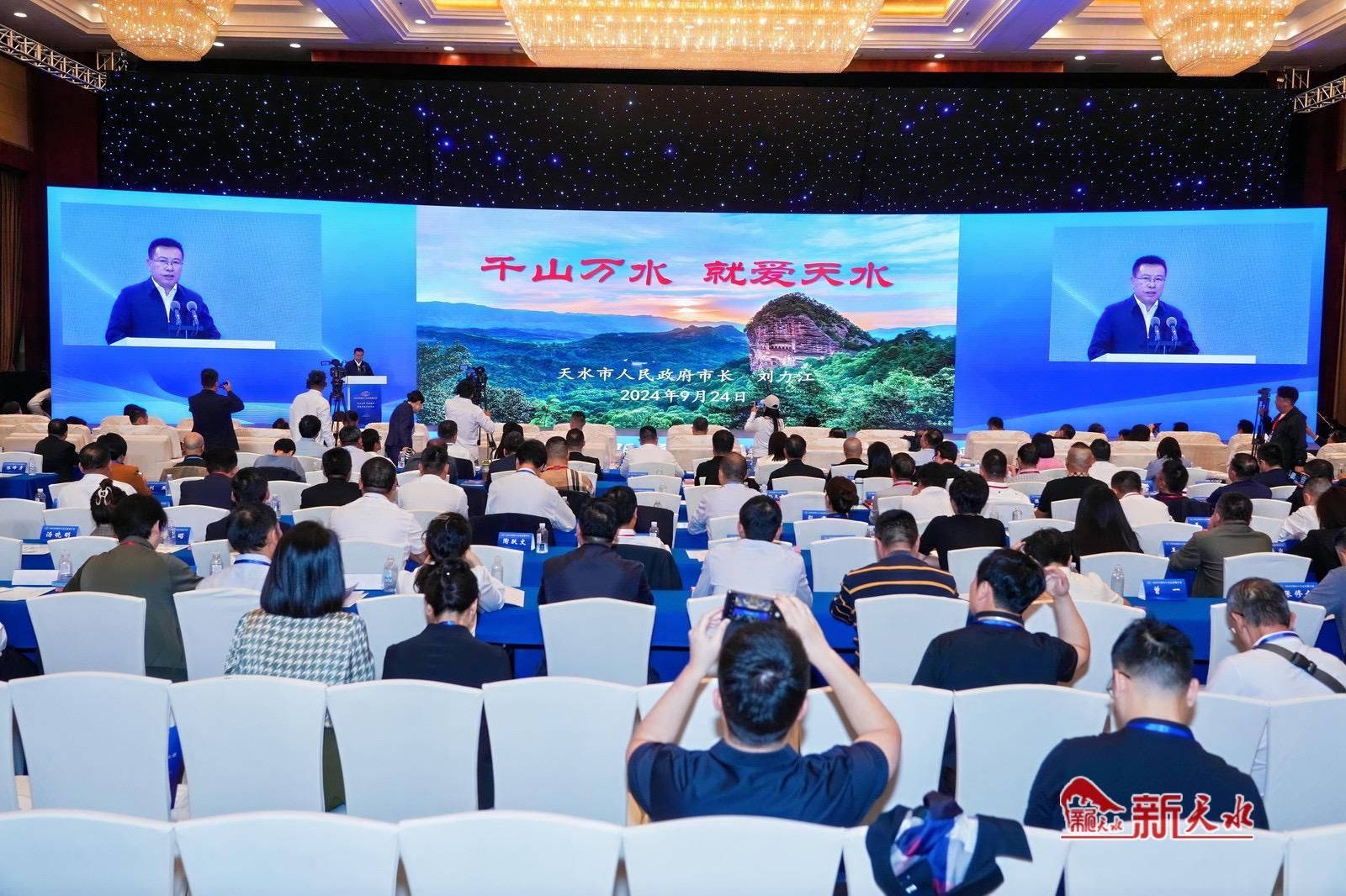 刘力江介绍了天水资源禀赋、优势产业和重点招商引资项目,热忱欢迎各界朋友莅临天水实地考察、洽谈合作、投资兴业。他说,天水区位优势明显、工业基础良好、历史文化厚重、农业特色鲜明、生态环境优良,吸引了各地企业家走进天水、投资天水。当前,天水正紧紧围绕省委、省政府提出的“三区一地一中心”发展定位,深入实施“破局突围、加速追赶”专项行动、“优化营商环境提质增效年”行动和“引大引强引头部”行动,加力推进产业发展、项目建设、招商引资、乡村振兴、生态环保等重点工作,全力打造开放包容的新名片、产业发展的新引擎、高效服务的新标杆,天水展现出广阔的发展前景,孕育着无限的投资商机,已成为各位企业家的投资热土和创业福地。天水市将以本次中小企业发展大会为新的契机,始终秉承合作共赢理念,坚决履行“只要企业定了干、一切手续政府办”的郑重承诺,把企业作为最宝贵的财富,以最大诚意、尽最大努力,全力做好要素供给和服务保障,倾力支持各位企业家在天水投资兴业,携手开创地企合作共赢的崭新篇章。