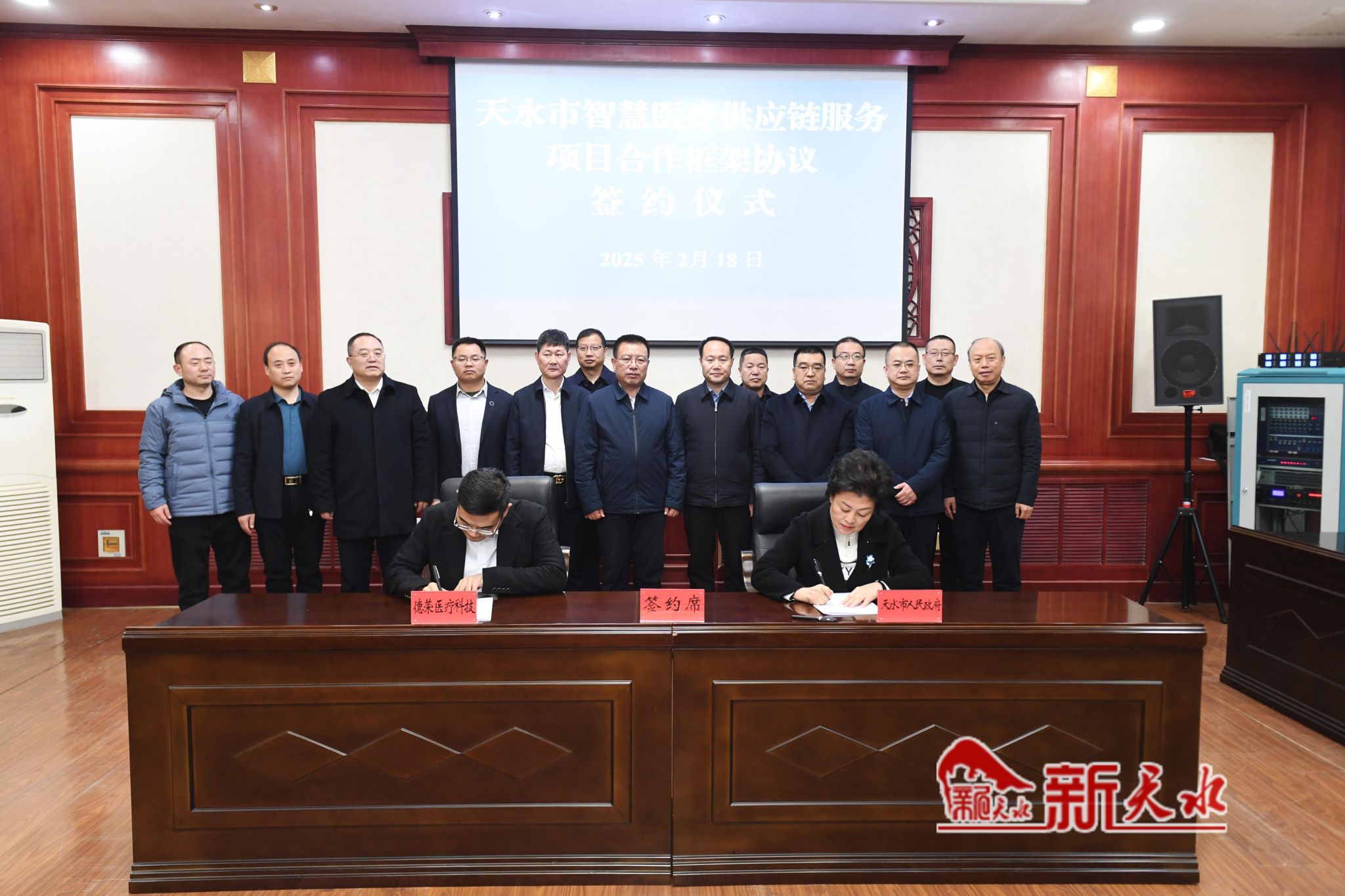 刘力江代表市委、市政府对德荣医疗科技股份有限公司给予天水发展的关注支持表示感谢。他说,天水历史文化悠久,区位优势明显,发展空间广阔,投资环境良好,已成为国内优质企业和广大客商竞相投资的热土。本次合作建设的天水市智慧医药供应链服务项目,将有效提升天水公立医院医疗物资管理效率、优化医药供应链服务,为广大市民提供更加优质、便捷的医疗服务。希望德荣医疗科技股份有限公司充分发挥技术、人才和经营管理等方面的优势,全面履行合作框架协议,加快推进项目早日落地实施。天水市将专人专班加强对接沟通,全面做好协调服务保障,全力推动项目早日建成运行、发挥效益。