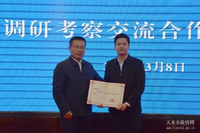 座谈会上,天水市政府聘请张玉锋为“天水市特聘招商大使”。