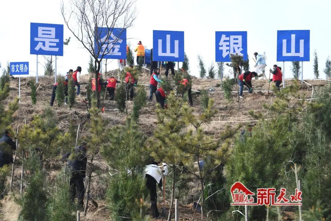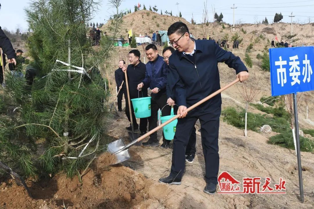 植树现场大家干劲十足、热情高涨。市领导与干部群众一起分工协作,一丝不苟完成每道工序,挥锹铲土、培土围堰、提水浇灌,合力栽下一株株树苗,和煦的春风中,新苗错落有致、迎风挺立,为初春的大地增添勃勃生机。