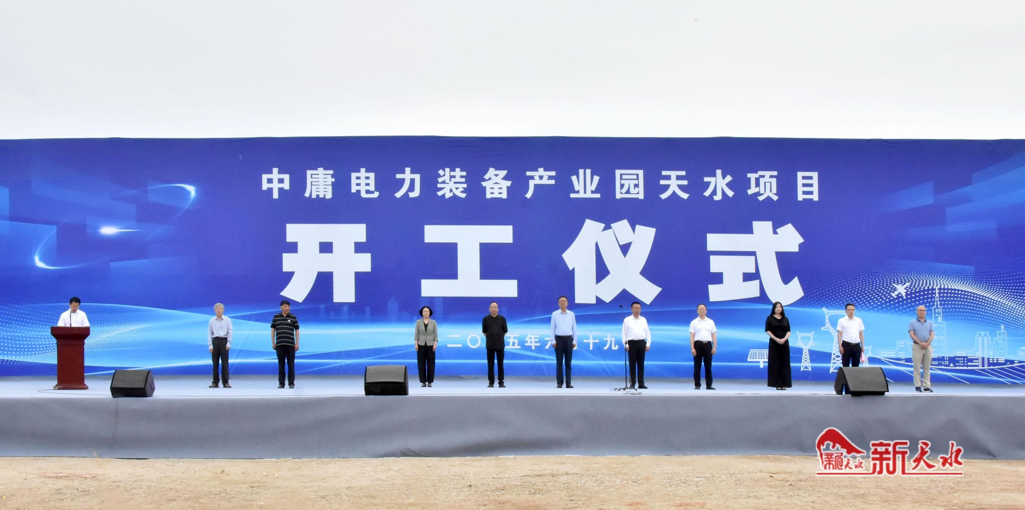 6月19日上午,中庸电力装备产业园天水项目开工仪式在天水经开区三阳高新技术产业园举行。市委书记冯文戈宣布项目开工,市委副书记、市长刘力江,中庸电力集团董事长魏翔致辞。
