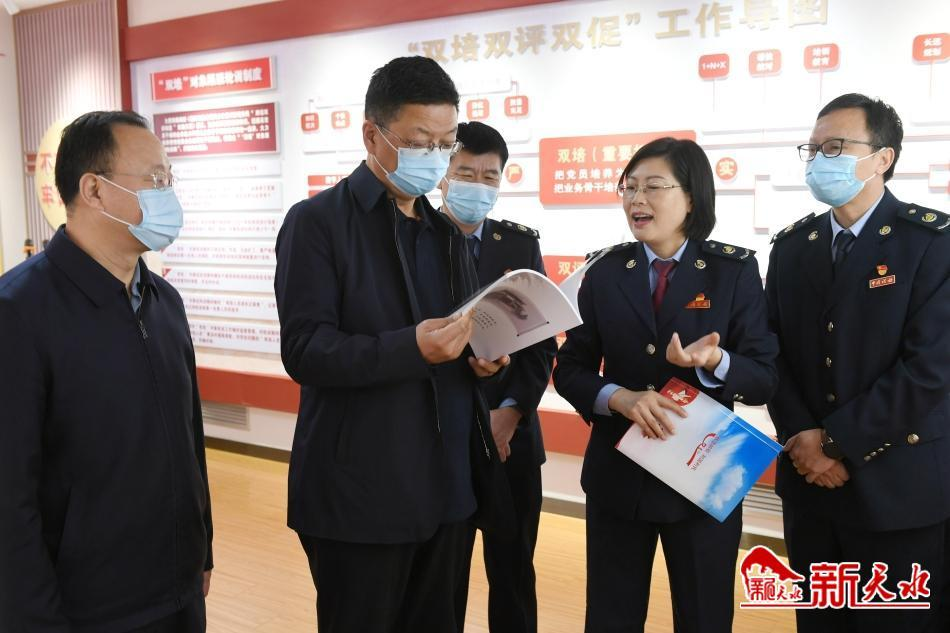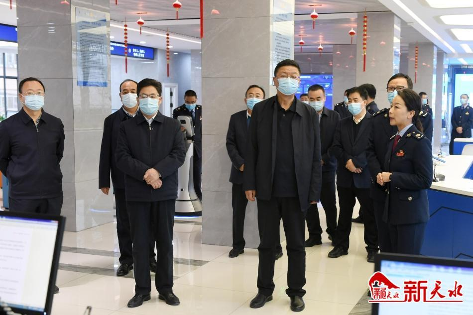 冯文戈、王国先先后来到秦州区税务局第一分局、市不动产交易中心、市房产交易中心,实地调研税收征管入库、土地交易、房地产交易情况。