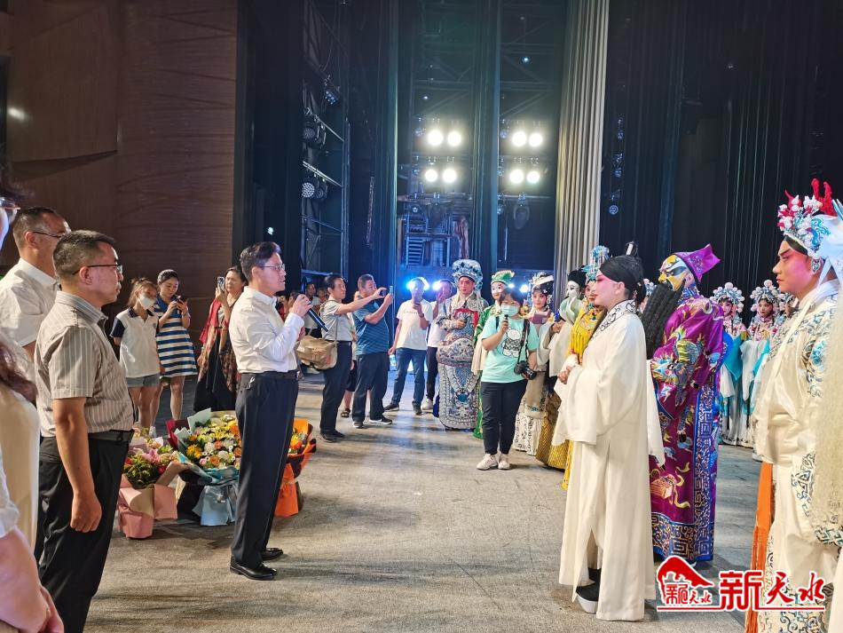 演出结束后,王国先、王文东等领导到后台,与演职人员亲切交流。王国先代表市委市政府对《谢瑶环》演出成功表示祝贺,对编剧和全体演职人员表示衷心的感谢。他说,整部剧故事性强,剧目表现手法丰富,舞台布置气势恢宏,演员表演很到位,感染力十足。