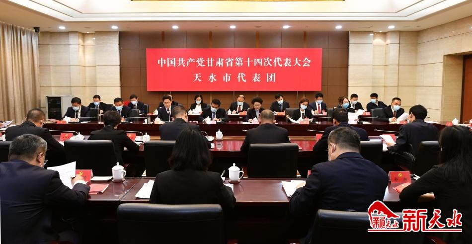 5月26日上午,出席中国共产党甘肃省第十四次代表大会的天水市代表团召开第一次分团会议,推选代表团团长、副团长,酝酿将在大会预备会议上通过的相关文件,学习《中国共产党章程》《中国共产党地方组织选举工作条例》。